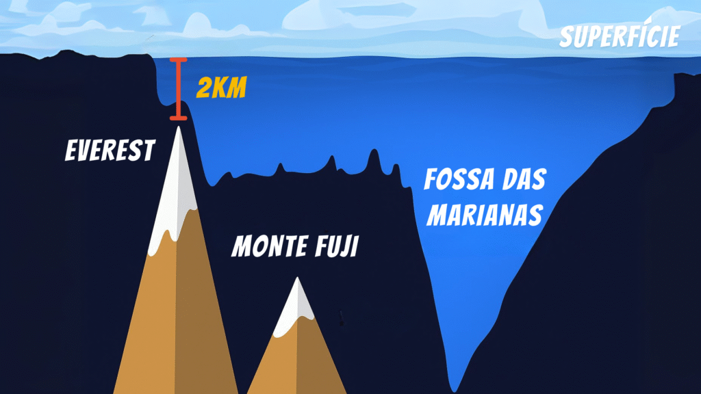 É esse tipo de máquina que nos permite explorar a Fossa das Marianas, no Oceano Pacífico — um abismo com quase 11.000 metros de profundidade. Para se ter uma ideia, se o Monte Everest fosse colocado dentro dela, seu topo ainda ficaria submerso por mais de dois quilômetros.