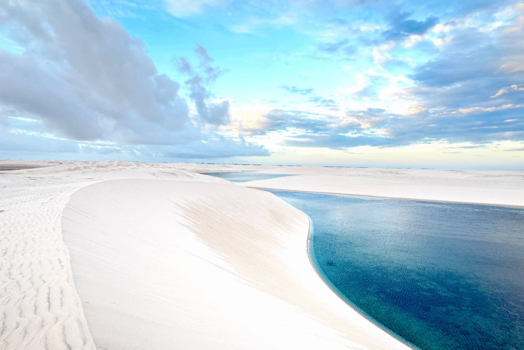 Antes de entrar nos detalhes dessa etapa, vale lembrar um pouco sobre esse cenário único. O Parque Nacional dos Lençóis Maranhenses foi criado em 1981 e, em 2024, recebeu o título de Patrimônio Mundial da UNESCO, reconhecimento mais do que merecido por sua beleza e formação geológica singular. São cerca de 1.500 quilômetros quadrados de dunas brancas que se estendem por 70 quilômetros ao longo da costa, recortadas por lagoas cristalinas formadas pela água da chuva. É um contraste tão surreal que justifica cada clique de câmera — e, mais ainda, cada passo da caminhada.